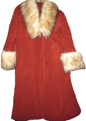 The outside body from the 'Treasure Hunt Room', the cuffs and leather toggles and suede patches are sold on the accessories/trim room wall, the silkfaced brocade lining came from the remnant rack.